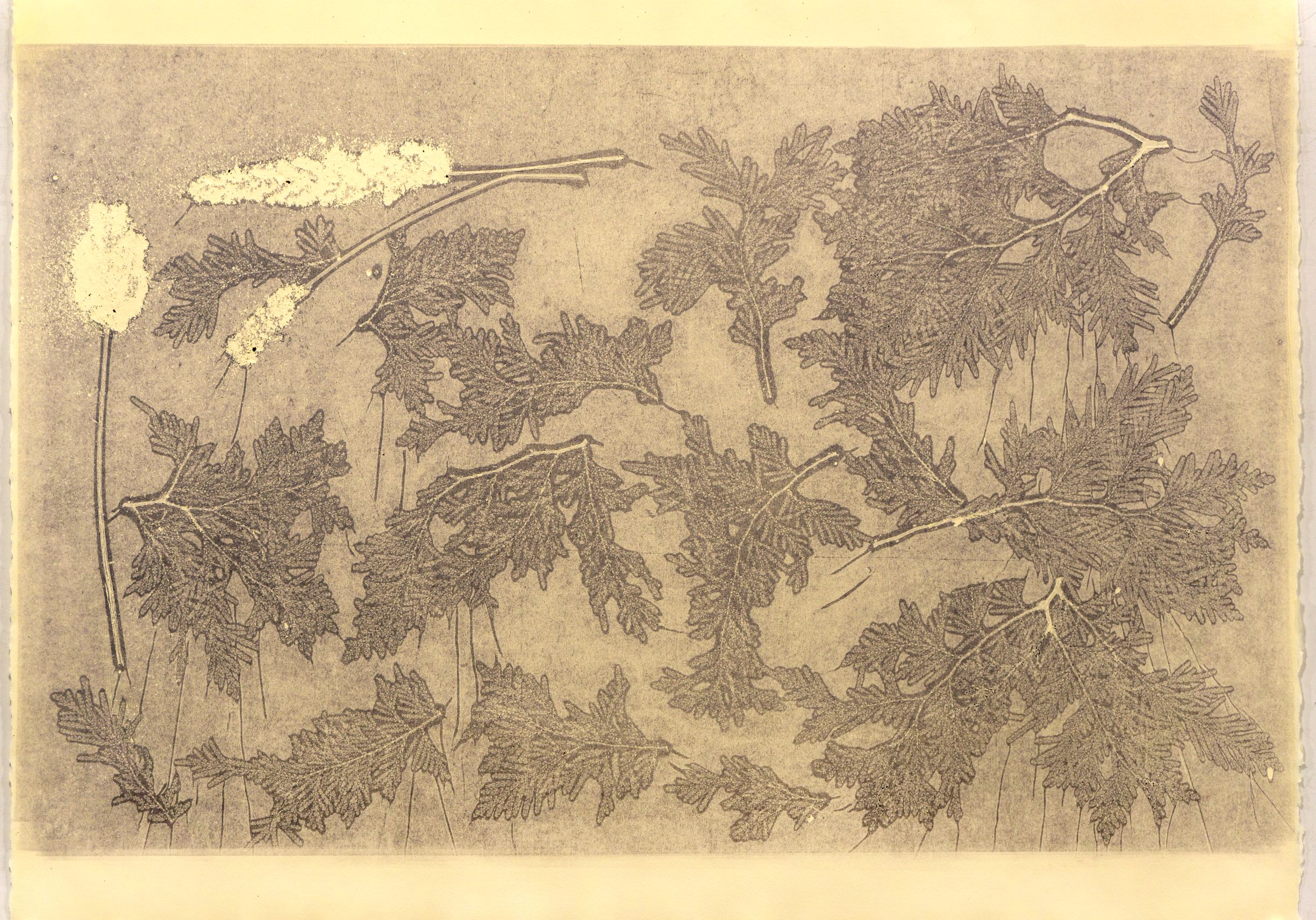 monotype, white ash, sinew, cedar